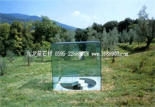雕塑景觀的樂趣還在表現(xiàn)方式的不同,同時歷史和文化差異也給作品帶來獨特的魅力。如井上武吉在高利收藏園創(chuàng)作的作品,從神社祭祀活動受到啟發(fā),它采用了線、下沉的面、通道以及玻璃材質(zhì)的圍合等對自然空間限定的方式,造成了一個可以穿行的神秘的景觀作品。將黑暗與光明、神圣與離奇貫穿其中。當(dāng)人們游行而過時,會獲得一種解脫與再生的神奇體驗。