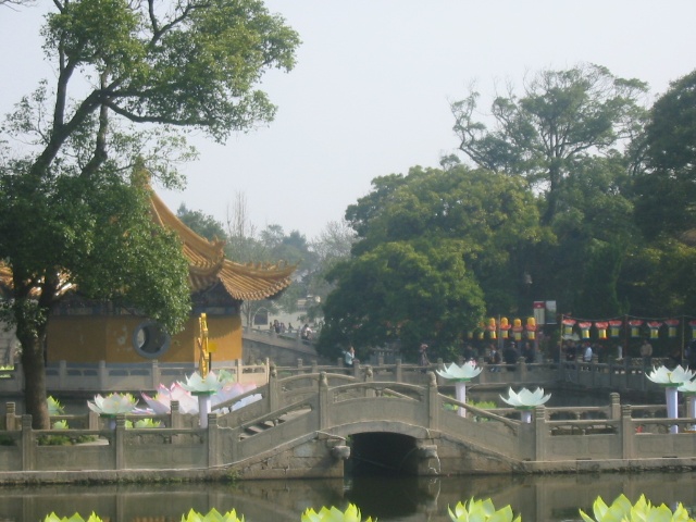海印池東橋名“永壽”拱橋明歷三十四年(1606)太監(jiān)張隨所建。永壽橋又名蓮花橋,橋脊高拱,如虹臥波,與東邊的多寶塔相呼應(yīng)。海印池在普濟寺山門前,也稱“放生池”、“蓮花池”,始建于明代。這與奉化溪口雪竇寺的布局極為類似,只不過佛教建筑顯得更為古撲。
