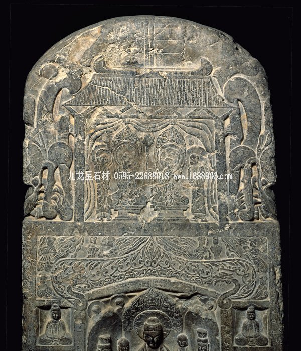 銘文顯示他們多屬于趙氏家族。整個(gè)石碑題材齊全,裝飾技法多樣,刻畫(huà)精致,集北魏晚期造像碑構(gòu)圖造型之大成。