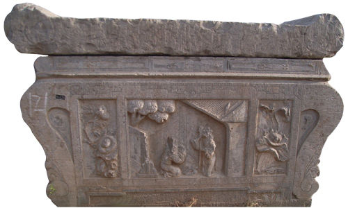 清孝子故事石供桌座(圖14) 高67厘米,長(zhǎng)130厘米,寬63厘米。