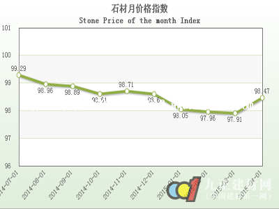 從4月石材周價(jià)格指數(shù)走勢(shì)圖看,本月石材周價(jià)格指數(shù)除2015-04-08期略下調(diào)外,總體基本呈現(xiàn)一路平緩?fù)粕淖邉?shì),價(jià)格循序漸進(jìn)調(diào)整。
