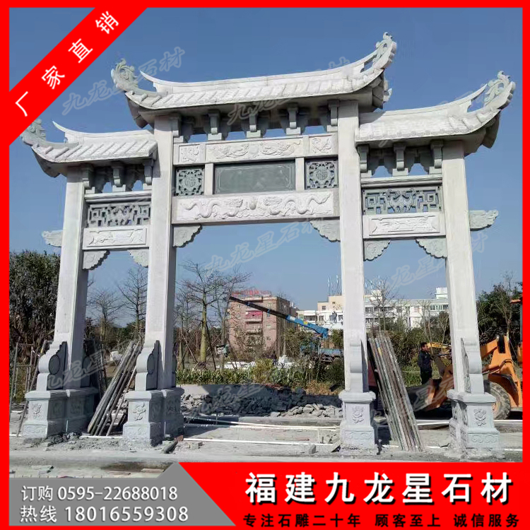 第二:牌坊大小,大型牌坊也有大小之分,筆者見(jiàn)過(guò)最大的牌坊高達(dá)6米,左右寬12米,深3米,整座牌坊完全采用立柱搭建,造型別致,精妙絕倫,這樣的大型牌坊價(jià)格是非常高的,當(dāng)時(shí)聽(tīng)聞,需要幾千萬(wàn)制作而成。但是普通的三門(mén)牌坊也可以稱之為大型牌坊,價(jià)格不過(guò)幾萬(wàn)到十幾萬(wàn)也非常多。主要是越大的作品,需要加工的工藝和使用的石料都會(huì)增加,并且后續(xù)的運(yùn)輸,安裝也會(huì)非常的繁瑣導(dǎo)致的。
