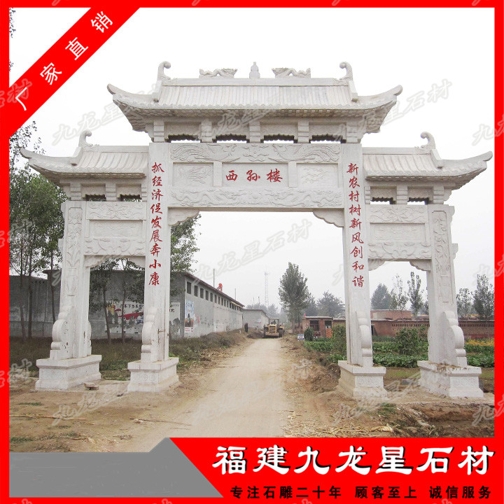 傳統(tǒng)村門口石牌坊雕刻技法的綜合運用,使得村門口石牌坊制作極其精美,使進村牌坊,村口牌坊設計效果圖具有強烈的層次感,產生變化多端的負空間。村口石牌坊 ...