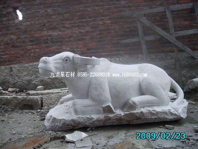 石雕耕牛采用整塊G633花崗巖雕刻而成,高0.75米,長(zhǎng)1.4米。