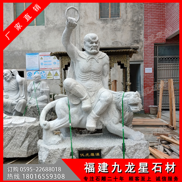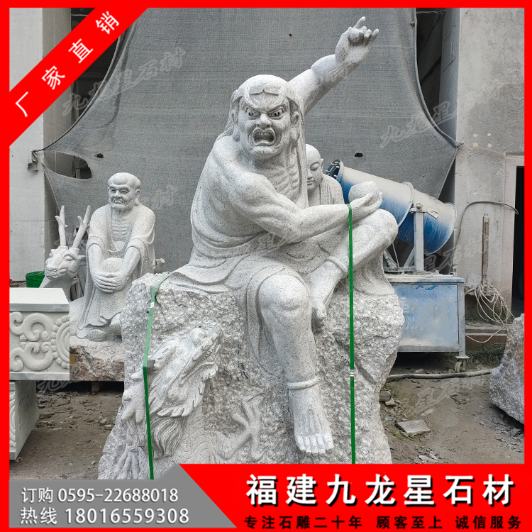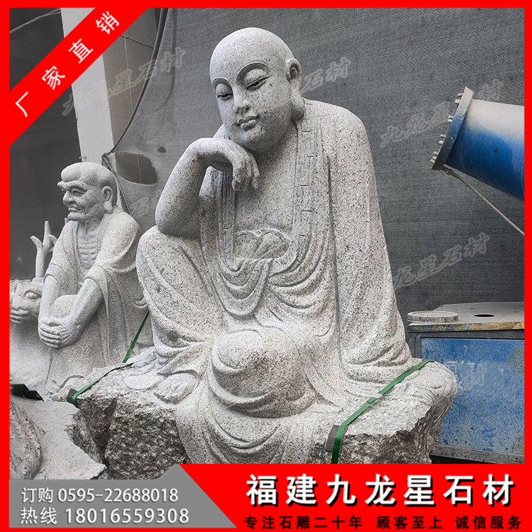 看著每一尊寺院十八羅漢石像,不得不感嘆古人的智慧啊。這些被珍藏的十八羅漢塑像,保存的如此完好,這還是要歸功于,十八羅漢塑像是采用的天然石材手工雕刻而成,純天然的石頭在大自然中被人們開鑿來制作成十八羅漢石像作品,這樣的一整套十八羅漢作品,不僅帶著天地精華,也將人們的智慧和工藝賦予其中,石刻十八羅漢就是最好的安排了吧。古代十八羅漢帶有歷史沉淀的韻味,具有很高的研究價值。而現(xiàn)代十八羅漢雕刻為了能有這樣的一份感情,開始了對石雕18羅漢仿古做舊的技術,也更符合一些古建筑,古剎寺院去擺放仿古代石雕十八羅漢擺件。
