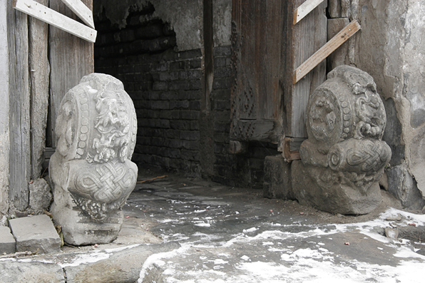 方形箱式門墩是過去文官府邸的標(biāo)志。這種門墩是讀書人的偏愛,因?yàn)樗笳髦x書人放書的箱子。門墩上也經(jīng)常雕有小獅子和氣林。