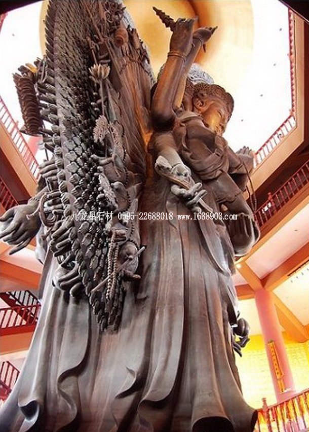 千手觀音是我國民間信仰的六大菩薩之一。千手觀音是阿彌陀佛的左脅侍,與阿彌陀佛、大勢(shì)至菩薩(阿彌陀佛的右脅侍)合稱為“西方三圣”。據(jù)佛教典籍記載,千手觀音菩薩的千手表示遍護(hù)眾生,千眼則表示遍觀世間。