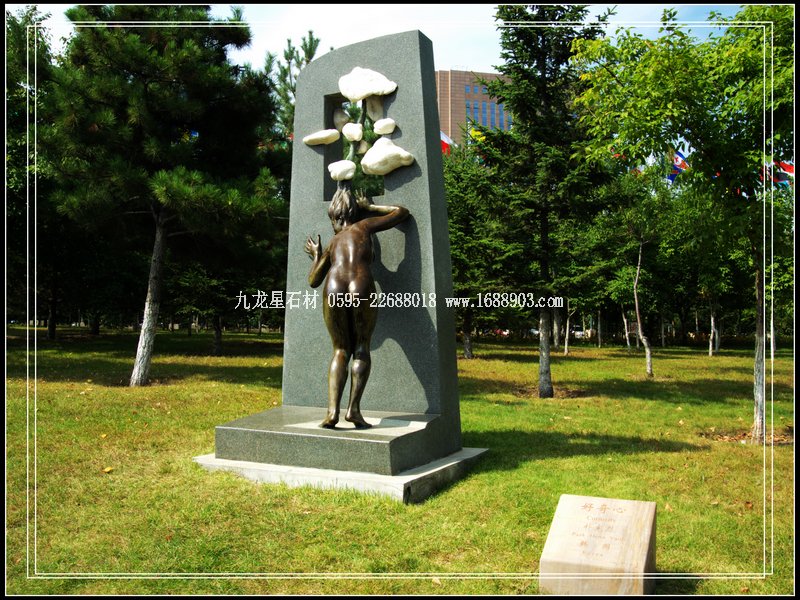 完美體現(xiàn)“友誼·和平·春天”的主題雕塑塔,由國(guó)內(nèi)著名雕塑大師葉毓山、潘鶴、程允賢、王克慶、曹春生共同創(chuàng)作完成。塔高29.5米,由少女、鮮花與和平鴿組成,周圍環(huán)繞著反映五大洲民族風(fēng)情的五組鑄銅人物雕像和漢白玉浮雕,造型精美,氣勢(shì)壯觀,榮獲第三屆全國(guó)城市雕塑建設(shè)成就展優(yōu)秀作品獎(jiǎng)。