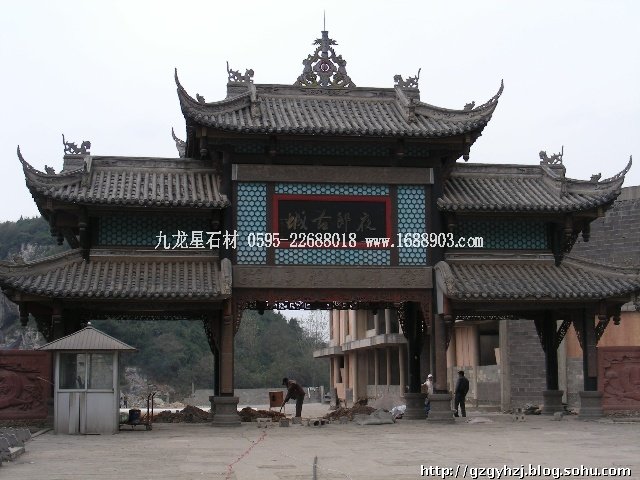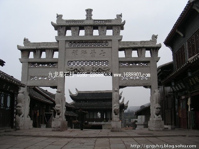 其實,在我看來,而現(xiàn)在新建的牌坊,構(gòu)建意圖已經(jīng)遠遠離開了被打上封建主義的那些色彩烙印。在用意上已經(jīng)擴展了它的內(nèi)涵,使其外延更為豐富和更具觀賞性。如地名、旅游點、廟宇、山門等以牌坊作為門頭等標志性建筑物,用來標明地名,宣傳文化的建筑物。那些刻寫在牌坊上面的楹聯(lián)文字,雖片言只語,卻道出了一些人生哲理與敘事抒情趣事趣聞,可謂深淺皆成趣,雅俗均共賞。