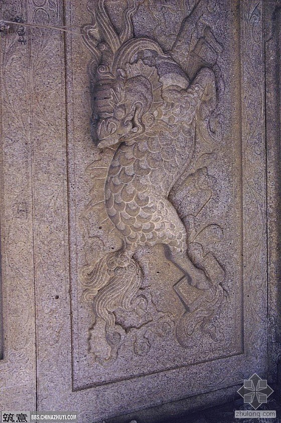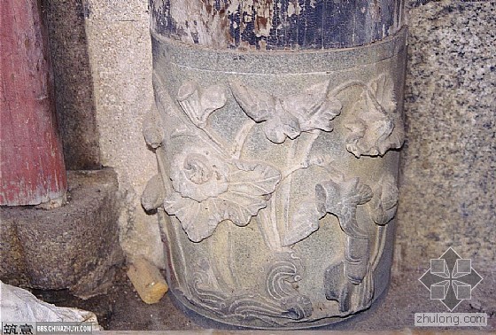 | 圖中左右兩個(gè)壁柱下石作下段也一樣,稍小。和須彌座的圭角一致的是都立于土襯石上。按照劉大可《中國古建筑瓦石營法》標(biāo)準(zhǔn)的須彌座的圭角用如意云。倒是圖中形狀有象龜腳之處;整體應(yīng)該是仿幾案。臺(tái)灣研究閩南古建的學(xué)者稱之為“柜臺(tái)腳”。