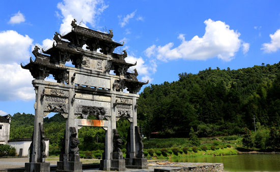 胡文光牌坊:俗稱西遞牌樓。建于明萬歷六年(公元1578年),距今已有400多年的歷史。牌坊高12.3米,寬9.95米,系三間四柱五樓單體仿木石雕牌坊,通體采用當(dāng)?shù)氐摹镑鹂h青”大理石雕筑而成,整個(gè)牌坊上下用典型的具有徽派特色的浮雕、透雕、圓雕等工藝裝飾出各種圖來,而每一處圖案都蘊(yùn)含有極深刻的寓意。胡文光牌坊造型莊重、典雅,石刻技藝出眾,堪稱明代徽派石坊的代表作。
