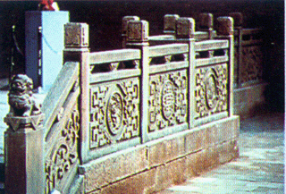 莊園大量的石雕,還是砂石作品。其石材多取于附近山中,質(zhì)地有白、綠、紅、青多種,主要用于橋、廳、臺、廊的護欄和柱體,半亭花墻、影壁和牌坊,刀法較青石作品粗獷、雄渾,畫面疏朗典雅、疏密得當、虛實和諧、古樸堅實,顯得特別有氣魄。杏壇、街心牌坊、祠堂獻廳圍欄、養(yǎng)和堂階欄、半亭、三星影壁和莊園西門魚躍龍門巨幅石額,就是砂石雕刻的代表作。
